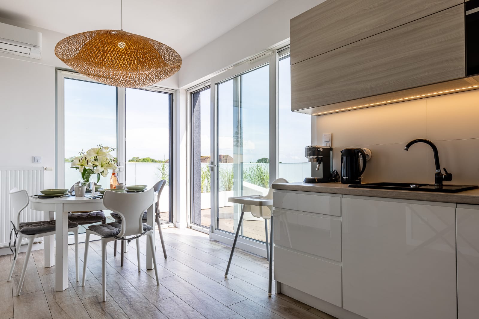 Apartament Latte zlokalizowany jest w nowoczesnym budynku znajdującym się 100 metrów od plaży. Idealnie sprawdzi się na wyjazd rodzinny lub weekendowy pobyt dla dwojga. Przestronny taras z widokiem na morze zachwyci najbardziej wymagających.